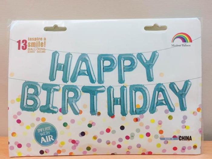 16"字母球-淺藍色生日快樂全組(HBD-B)