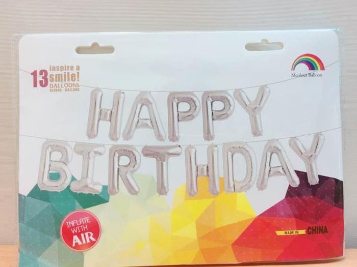 16"字母球-銀色生日快樂全組(HBD-S)
